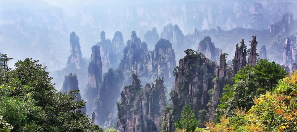 - Yuanjiajie: Recognized as the backdrop for the floating mountains in “Avatar”, it features the famous Hallelujah Mountain and the naturally formed First Bridge under Heaven.